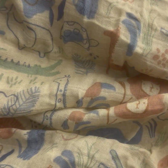 Wild Safari Muslin Swaddle | Hello Duchess® | Neutral Jungle Baby Blanket